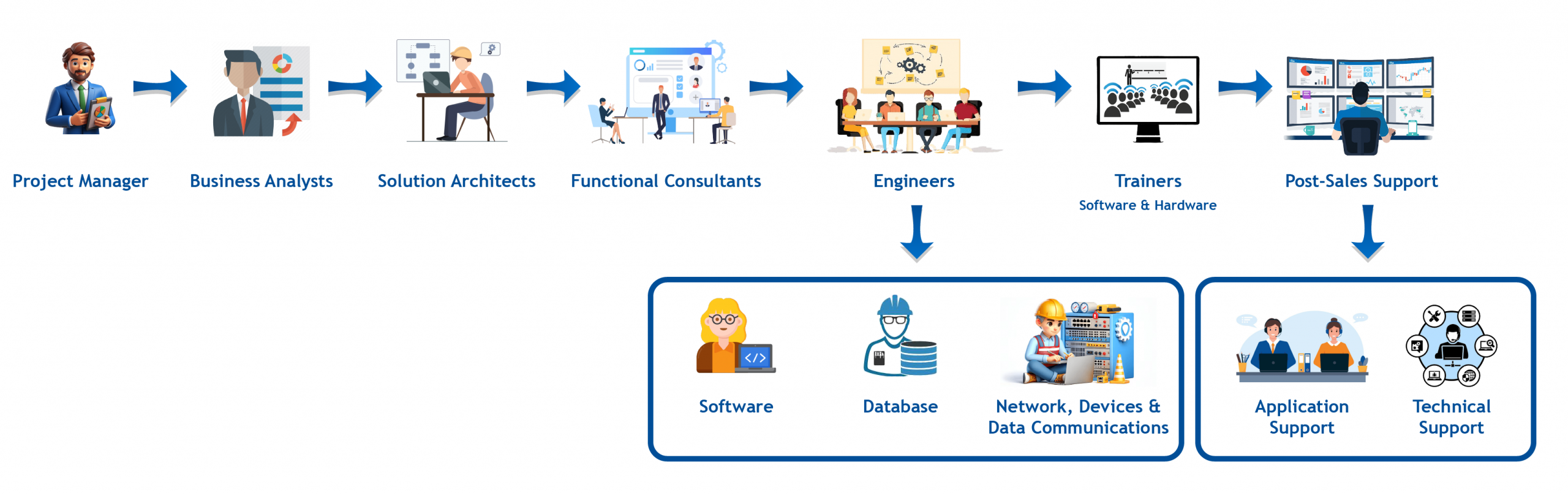 Their main function is to manage the project and deliveries of solutions - with or without customisation - and build relationships with the end-users and IT teams.